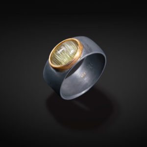 • 0114-brushed-oxidized-sterling-22K-gold-ring-yellowish-catseye-tourmaline