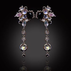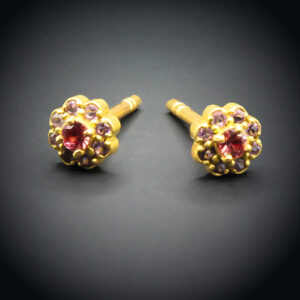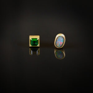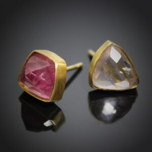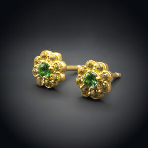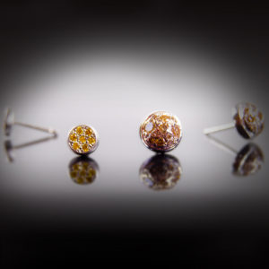 • 0171-left-18K-brushed-white-gold-stud-earrings-yellow-diamonds-right-18K-white-gold-earrings-light-brown-diamonds