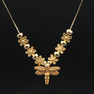 • Silver and Gold Rose and Lemon Quartz Necklace